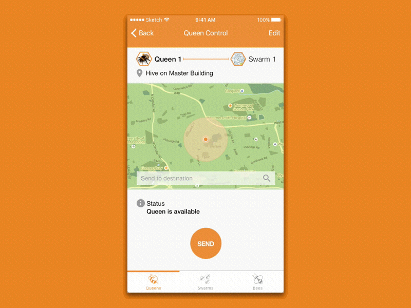 The aim of this project was to make a User Interface for the management of a fleet of autonomous vehicles. My idea was to make this iPhone app to control swarms of drone bees