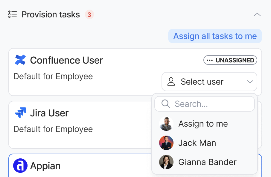 I designed the User Onboarding interface to improve how the End User Support (EUS) team manages joiners, transfers, and leavers across the company. The tool provides a high-level canvas view of onboarding status and a detailed sliding panel for managing provisioning tasks, assets, and user attributes.