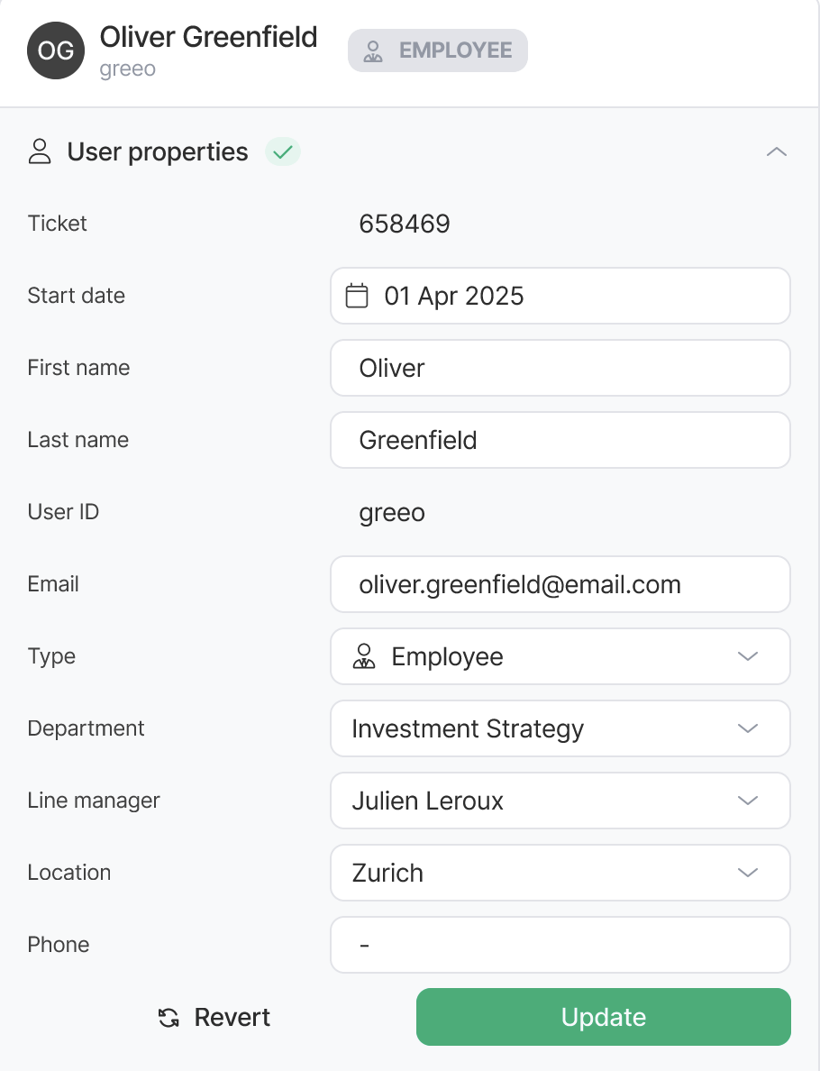 Unlike purely digital tools, this application is used to support real-world actions. EUS team members use it to assign desks, prepare laptops and phones, provision software access, and coordinate with line managers, all before the employee’s first day.